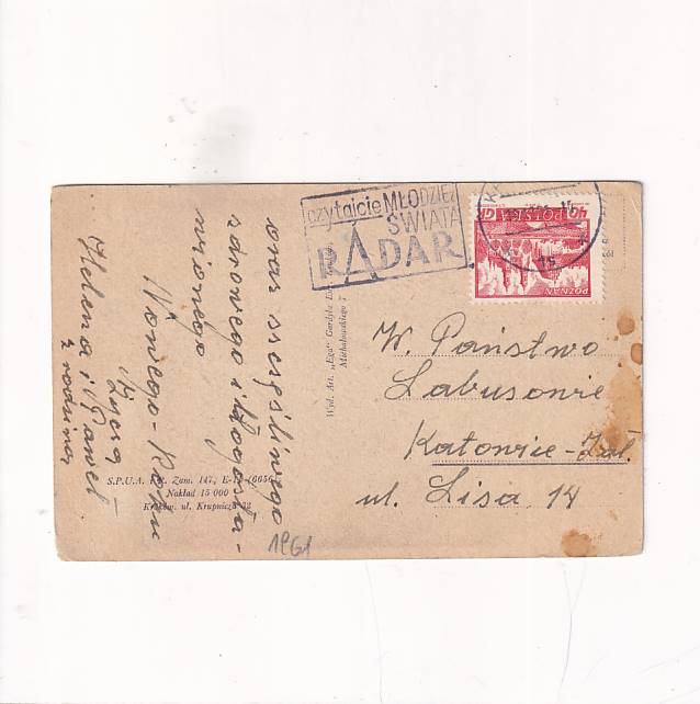 Stan jak na skanie, z obiegu. Format:14-*9cm. ROk 1961