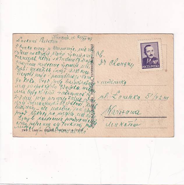Wysłano w 1949r. Format:14*9cm