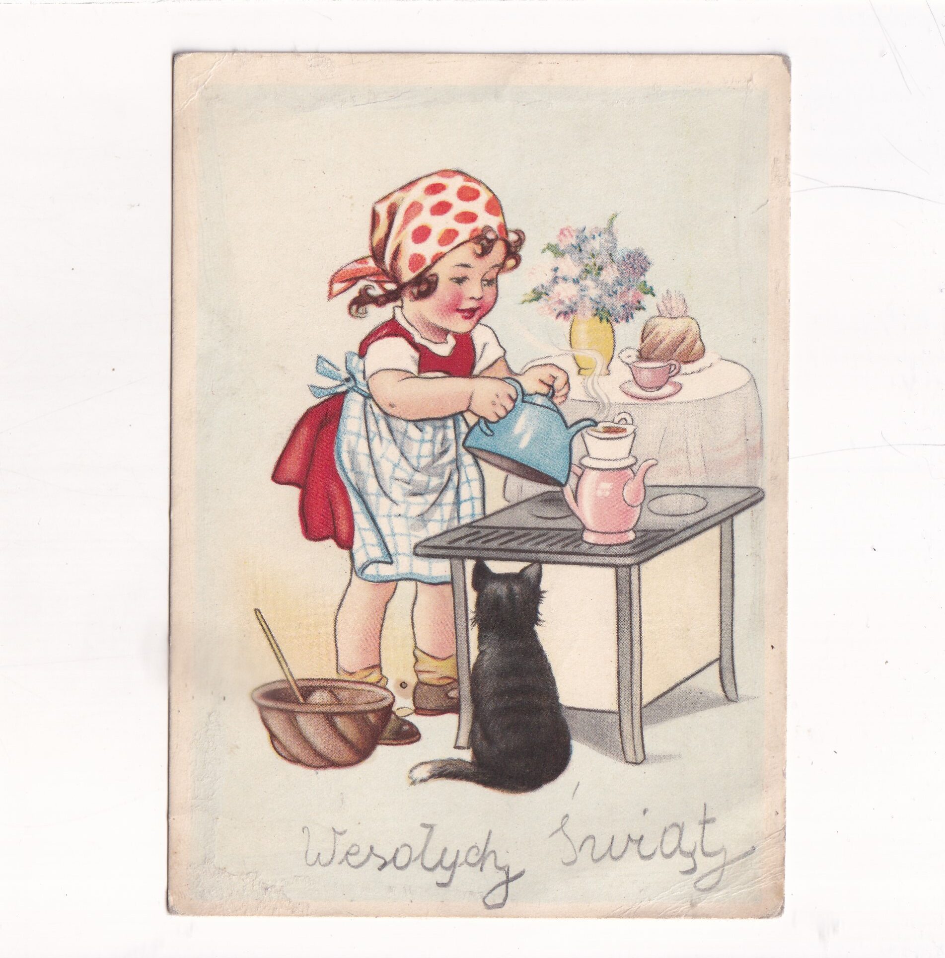 WESOŁYCH ŚWIĄT DZIEWCZYNKA KOTEK POCZTÓWKA A18732