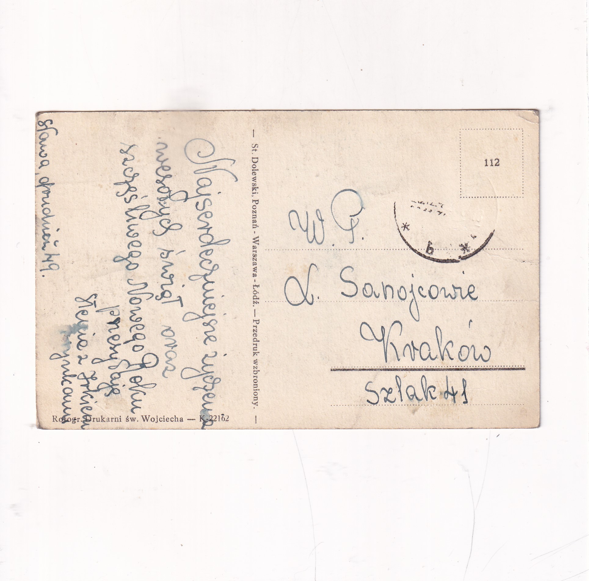 rStan jak na skanie, z obiegu . Wyd. St.Dolewski, Poznań-Warszawa-Łódź. Wysłano w 1949r