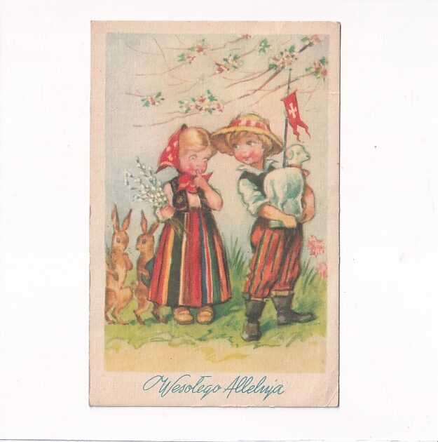 WESOŁYCH ŚWIĄT WIELKANOC DZIEWCZYNKA I CHŁOPCZYK POCZTÓWKA GRAF-075