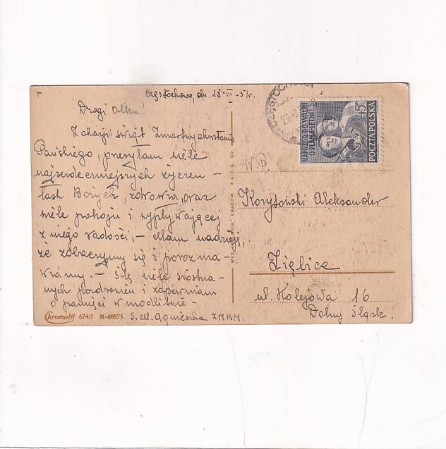 Wyd: POLONIA Kraków Format:14*9cm. Wysłano w 1951r