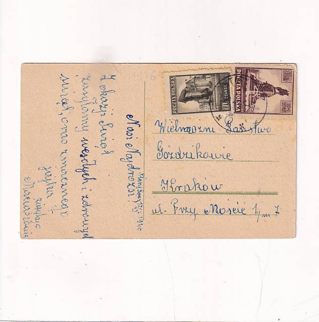 Stan jak na skanie, z obiegu. Format:14*9cm.Wysłano w 1946r.