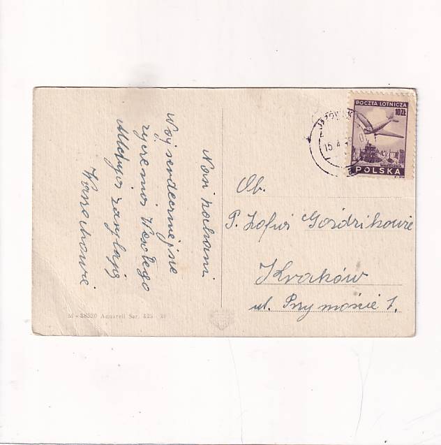 Stan jak na skanie, z obiegu. Format:14*9cm.Wysłano w 1949r.