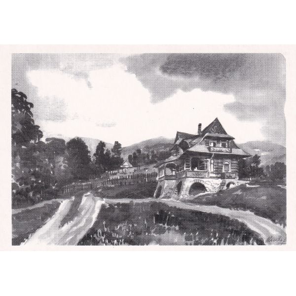 Wisła – pensjonat „Koliba”. B. Heczko – rysunek tuszem lawowany.