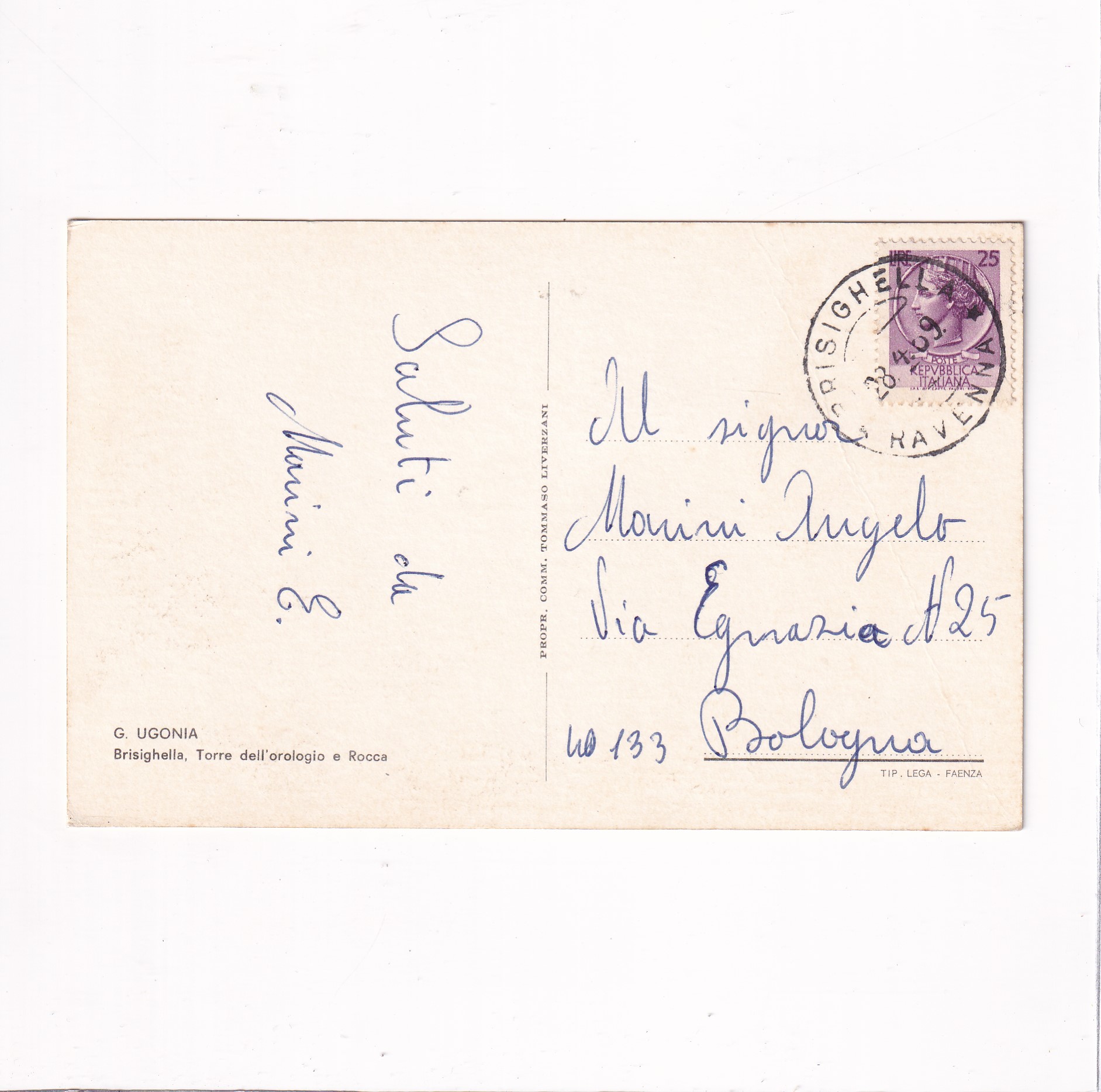 WŁOCHY G.UGONIA BRISIGHELLATORRE DELL’OROLOGIO E ROCCA POCZTÓWKA A10529