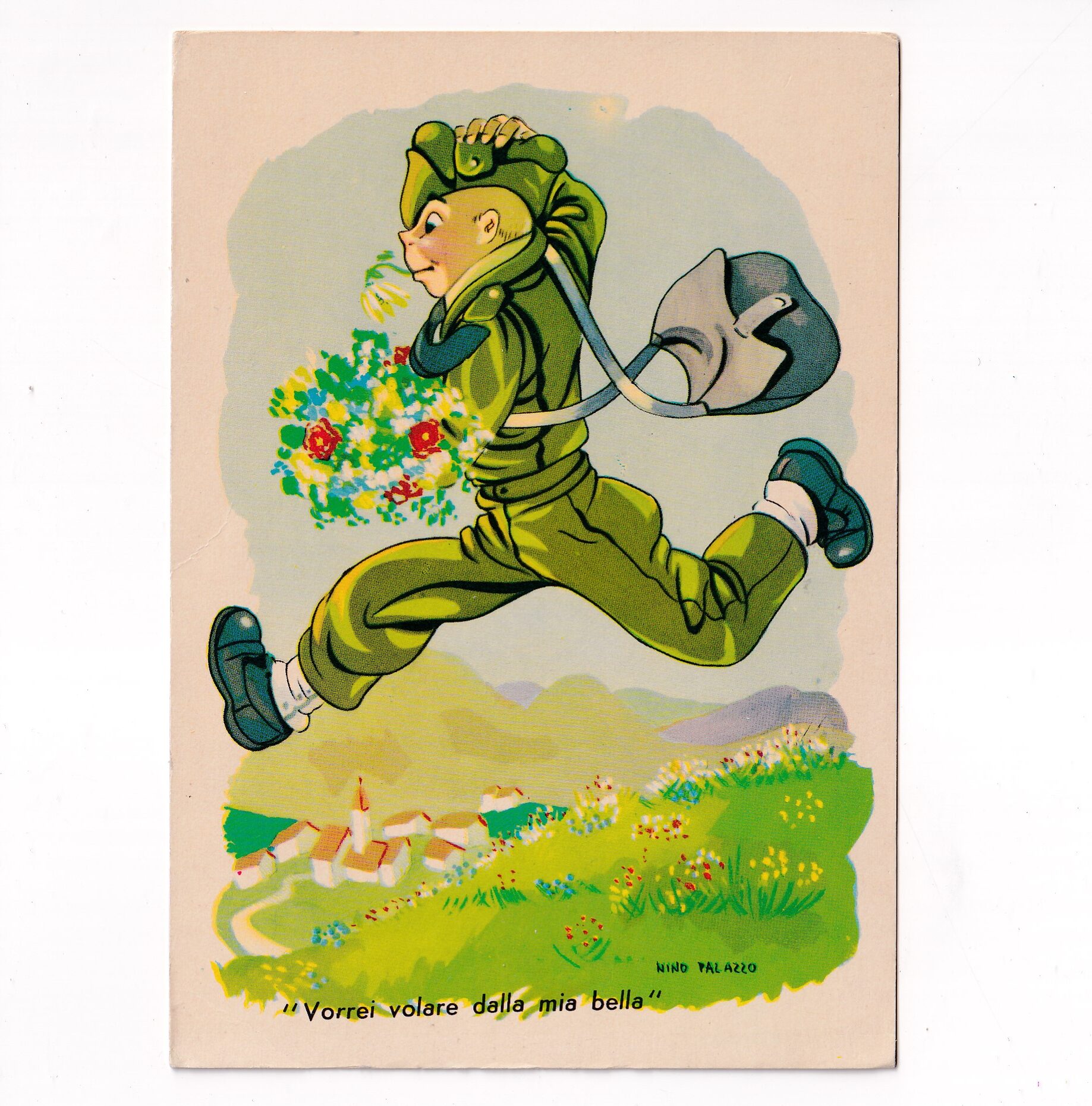 WŁOCHY RYSUNEK ŻOŁNIERZ KWIATY POCZTÓWKA A8423