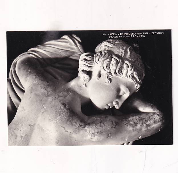 Zdjęcie przedstawia rzymską rzeźbę z II wieku n.e. znaną jako Śpiący Hermafrodyta.