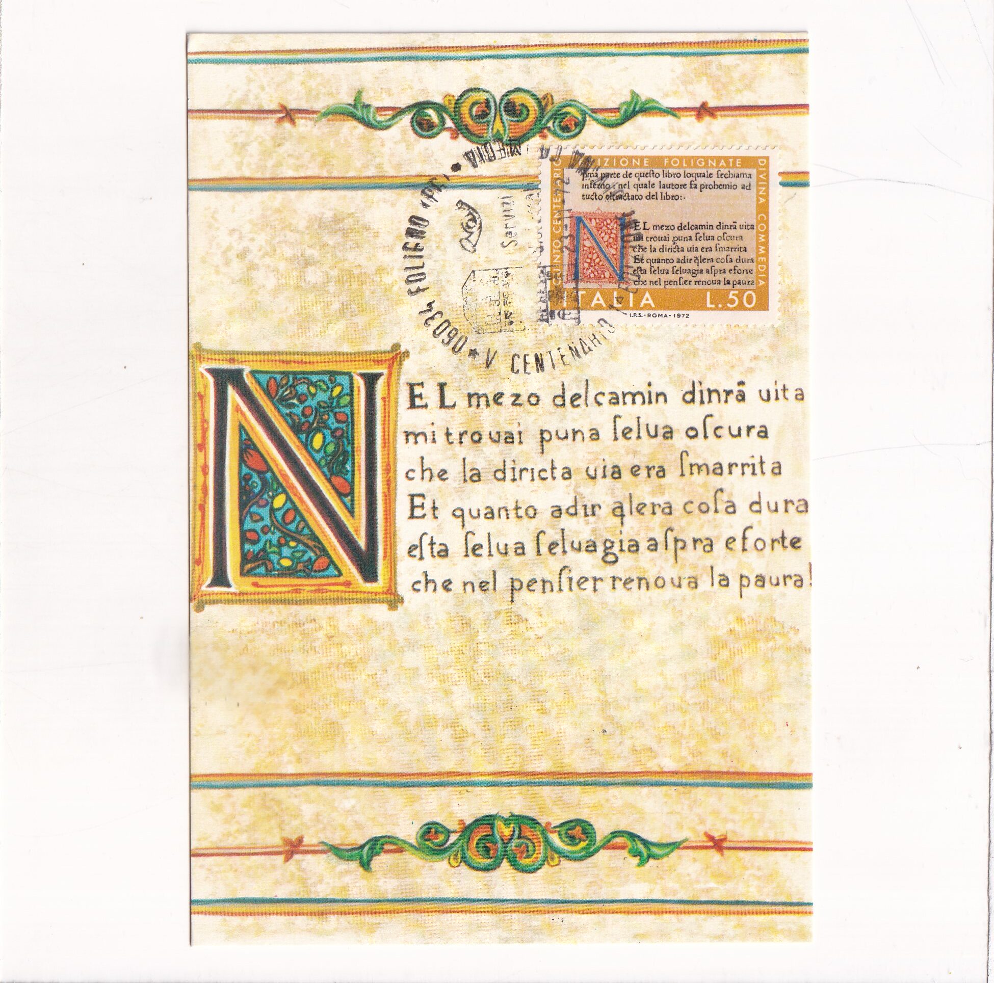 WŁOCHY V CENTENARIO DELLE PRIME TRE EDIZIONI DELLA „DIVINA COMMEDIA” MAXIMUM POCZTÓWKA A15206