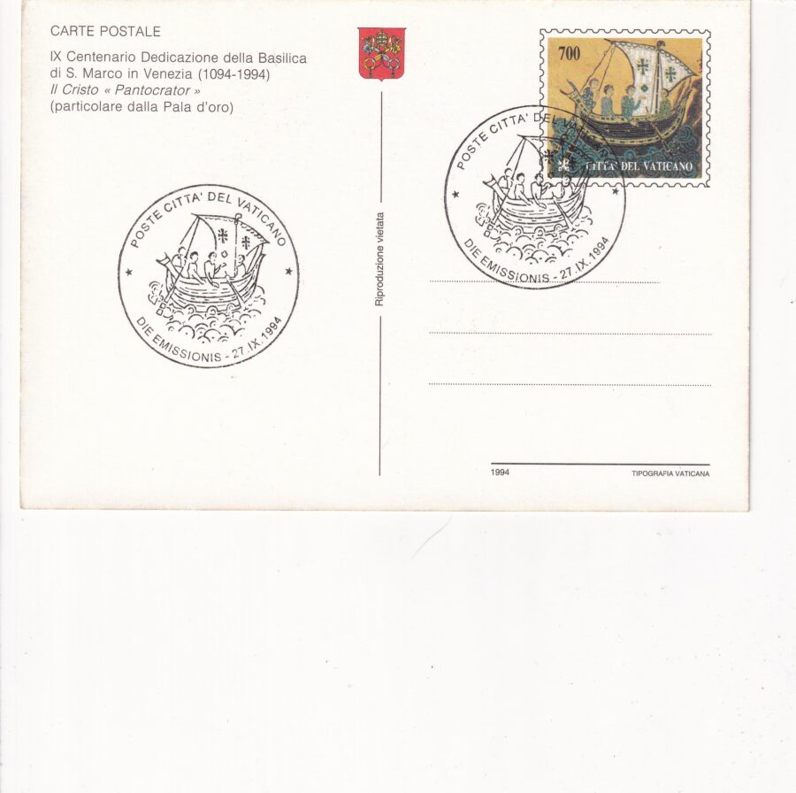 Zestaw 6 pocztówek z bazyliki św.Marka. Szósta pocztówka to część obwoluty.