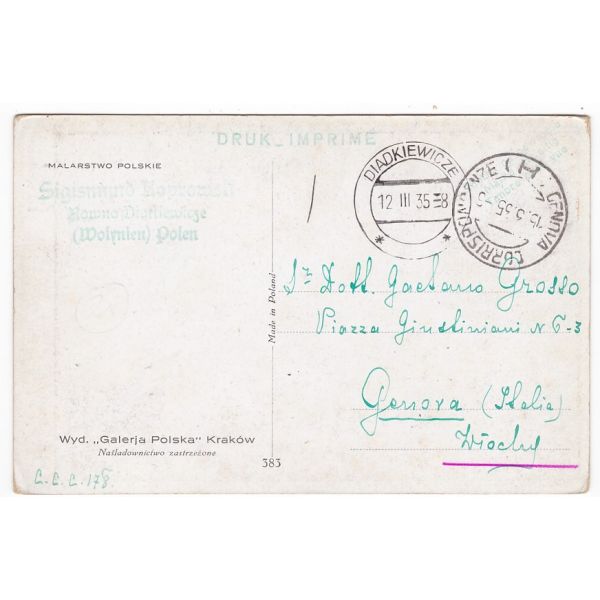 AKWARELA NA POCZTÓWCE POLSKA ZAGRANICA