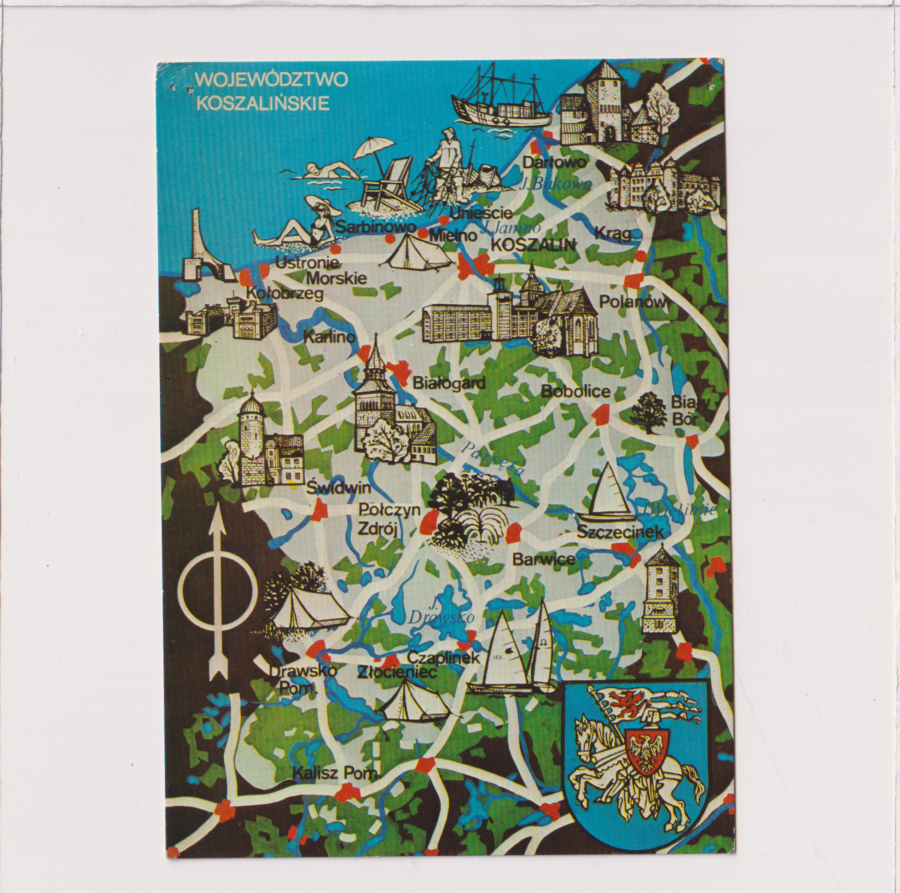 WOJEWÓDZTWO KOSZALIŃSKIE MAPKA HERB POCZTÓWKA A92280
