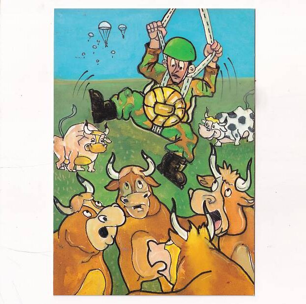 WOJSKO MĘŻCZYZNA Z HUMOREM SPADOCHRONIARZ KROWY POCZTÓWKA A33344
