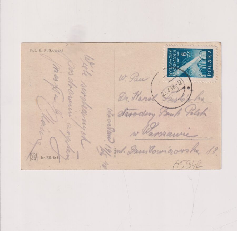 Stan jak na skanie, z obiegu. Stempel.Znaczek.Format:14*9cm.ROk 1948