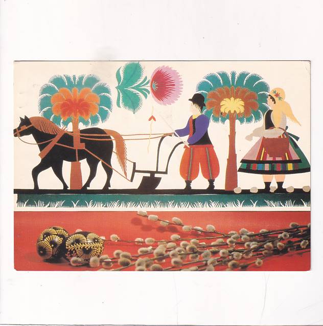 / WYCINANKA ŁOWICKA WESOŁYCH ŚWIĄT WIELKANOC POCZTÓWKA A29618