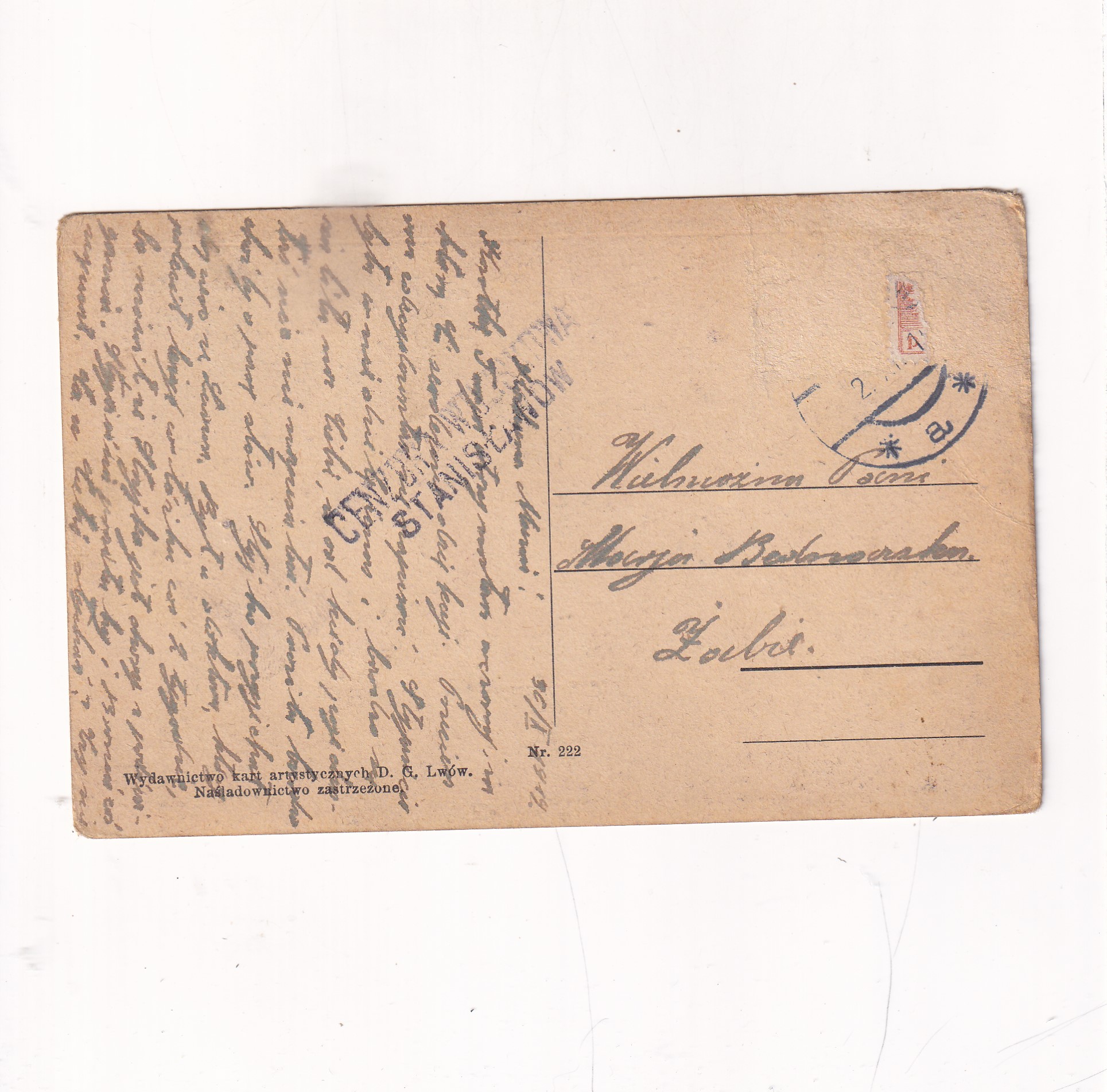 Format:14*9cm. Wysłano w 1919r
