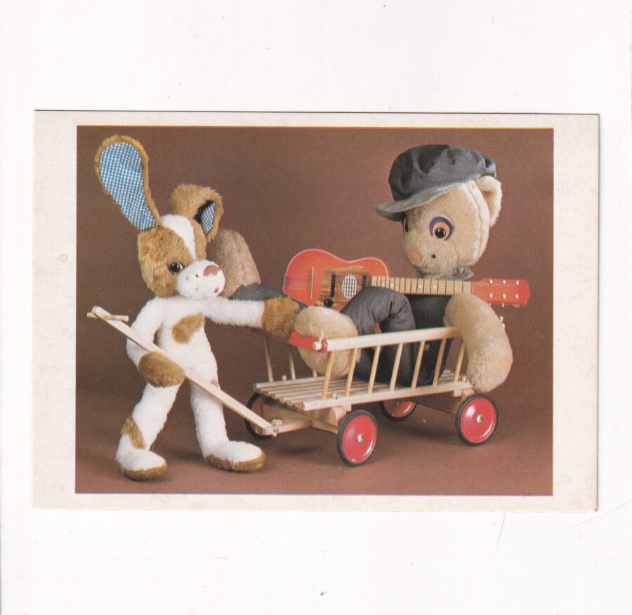 ZABAWKI PLUSZOWE MIŚ PIESEK WÓZEK POCZTÓWKA A33126