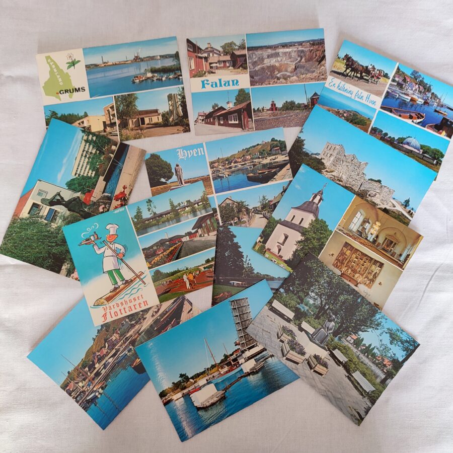 Przepiękna kolekcja 12 szt widokówek przedstawiających szweckie widoki.