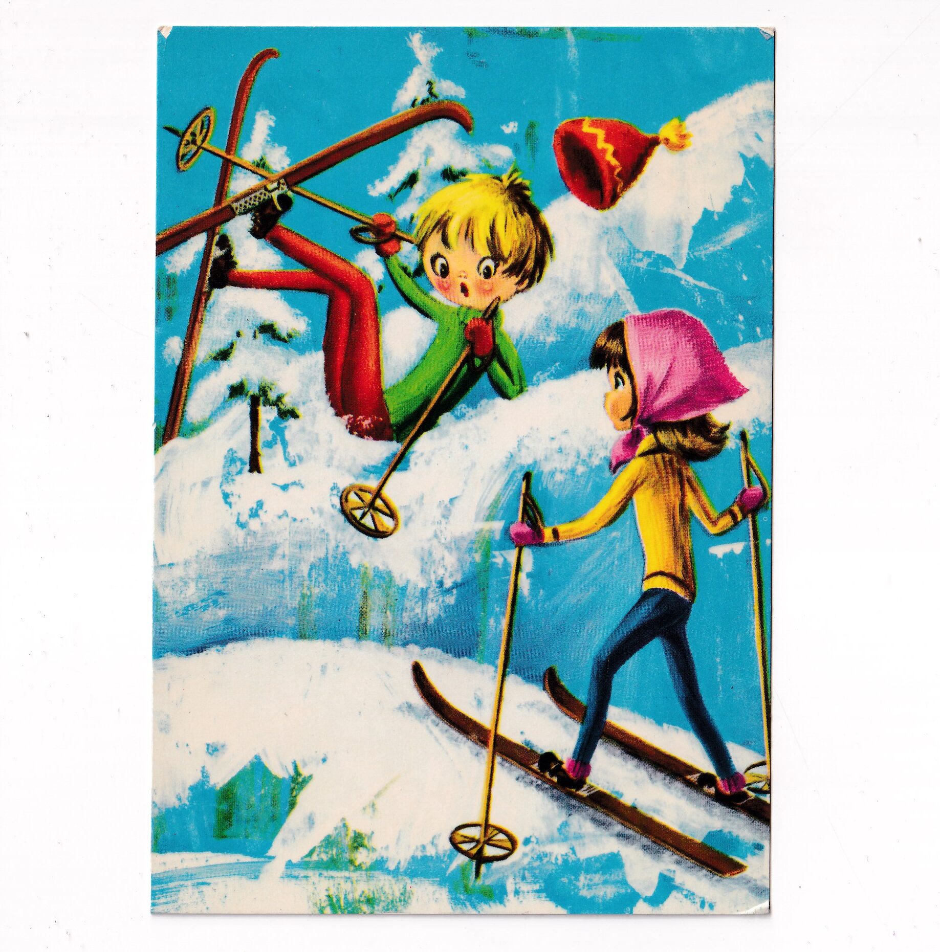 ZIMA NARTY WYPADEK POCZTÓWKA A8206